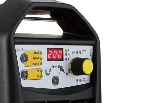 - Ο πίνακας ελέγχου διαθέτει πλήκτρα με εικονίδια και ψηφιακή οθόνη που δείχνει τιμές έντασης ρεύματος ή τις δευτερεύουσες παραμέτρους. Επιτρέπει την εύκολη επιλογή και προσαρμογή των επιθυμητών παραμέτρων