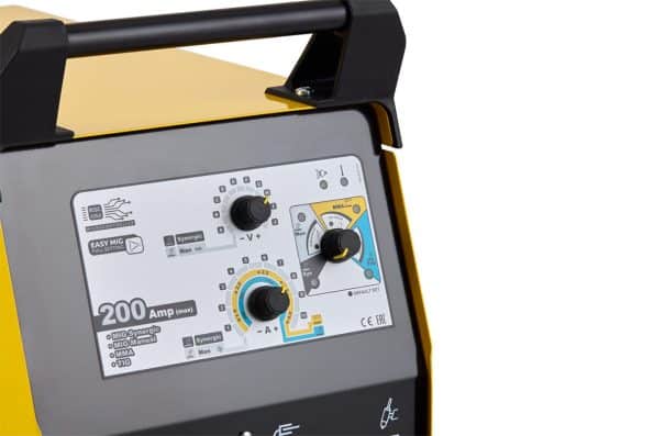 - SYNERGIC MIG CONTROL: Στη λειτουργία συνεργιακής συγκόλλησης MIG, ο μικροεπεξεργαστής που ελέγχει το μηχάνημα ρυθμίζει την επαγωγή και άλλες παραμέτρους συγκόλλησης. Απλώς επιλέξτε το πρόγραμμα που υποδεικνύεται στον πίνακα βοήθειας και είστε αμέσως έτοιμοι για συγκόλληση